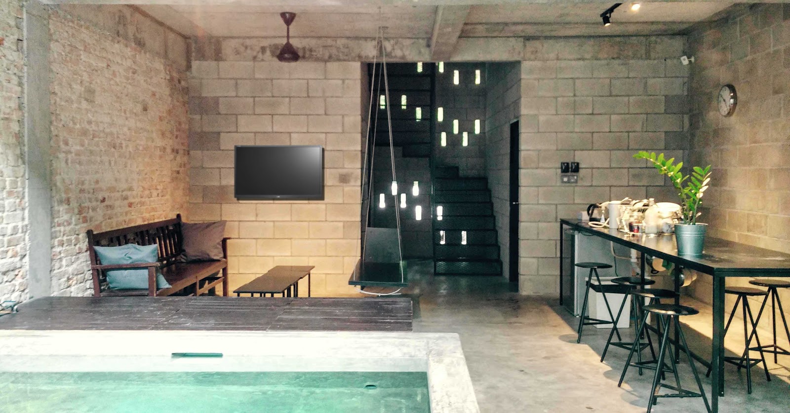 记得我朋友搭grabcar 来到民宿门口时,司机还非常怀疑她们被骗了,在这闹市当中,一堆旧店屋里,竟然有泳池?别开玩笑了~